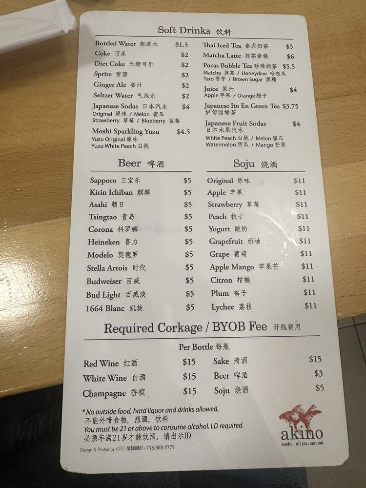 Located in Elmhurst, NY, Akino is a trendy sushi bar that offers a variety of options for both vegans and vegetarians. With its wheelchair-accessible entrance and gender-neutral restrooms, Akino caters to a diverse range of customers. The menu features a wide selection of sushi sets, combos, soups, salads, and kitchen appetizers, all prepared with fresh and quality ingredients. Customers rave about the AYCE lunch option, praising the abundance of fresh sushi at a reasonable price. The special rolls like the Volcano Roll and Dragon Roll are highly recommended for their unique flavors. With quick service and a comfortable ambiance, Akino is a top choice for those craving a satisfying sushi experience.